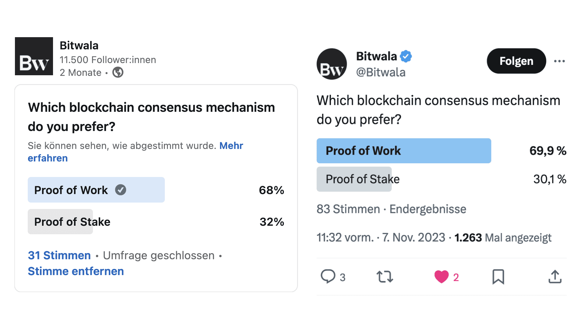 We asked our community on Twitter and LinkedIn as to which consensus mechanism they prefer. The results were as follows: